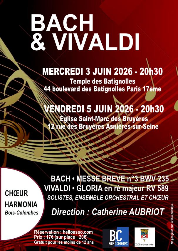 Le chœur Harmonia vous invite aux concerts Bach et Vivaldi qui se dérouleront :